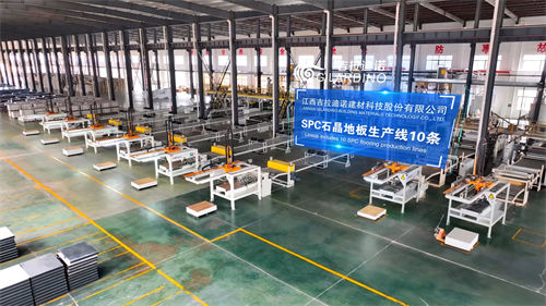 江西吉拉迪諾建材科技股份有限公司,占地面積近300畝,建筑面積13萬多平方米,總投資5億元,擁有20余條生產線,員工近300人。現有SPC石晶地板生產線十條、德國豪邁開槽線兩條、大型商用卷材生產線四條、水墨彩印生產線兩條、同透地板生產線兩條,超大型運動地板生產線一條、是彈性地板行業產能量大,硬件實力強的生產廠商之一。