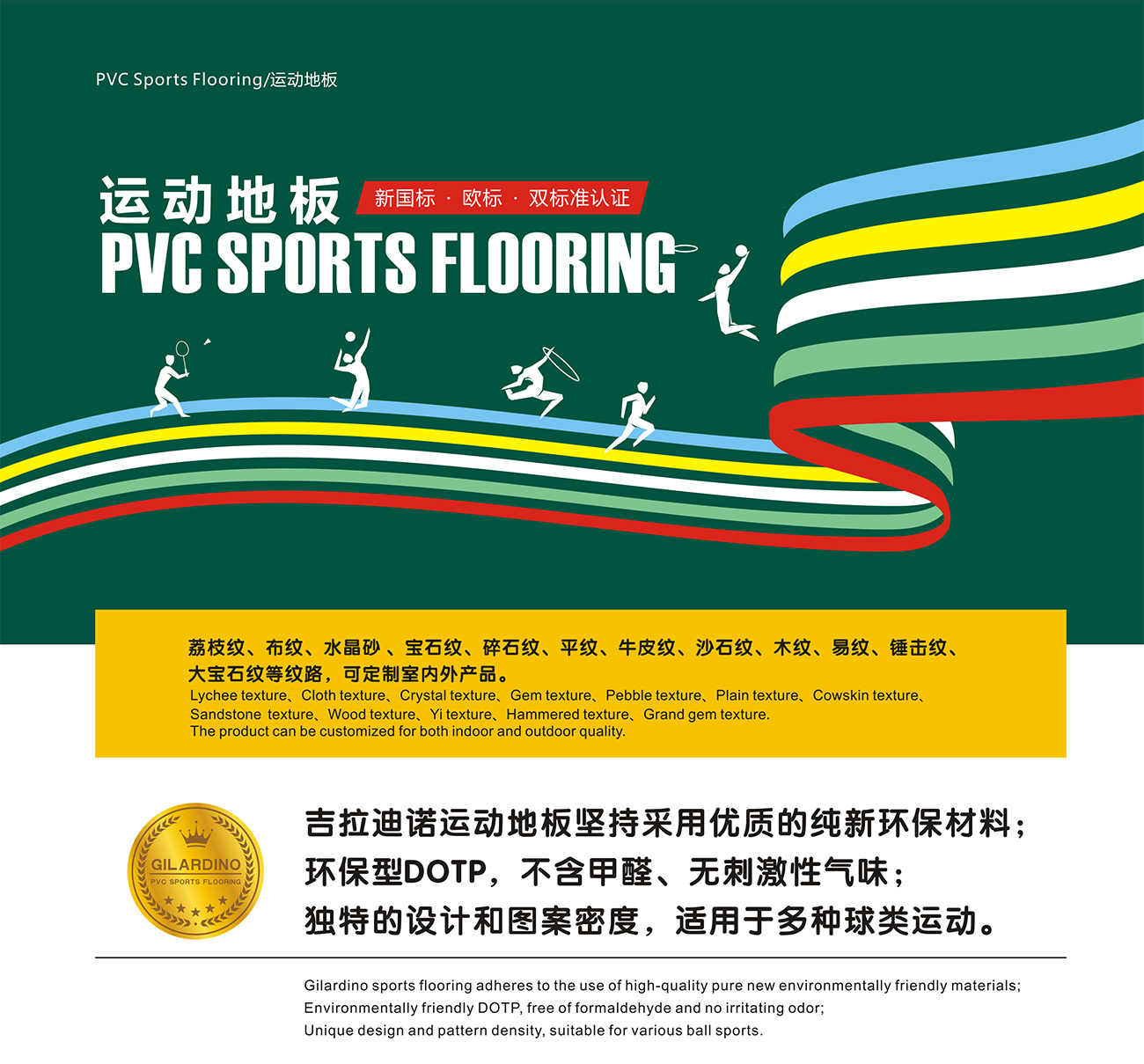 運動地板紋理:木紋/寶石紋/碎石紋/沙石紋/水晶砂/布紋/平板/荔枝紋/牛皮紋/定制紋理